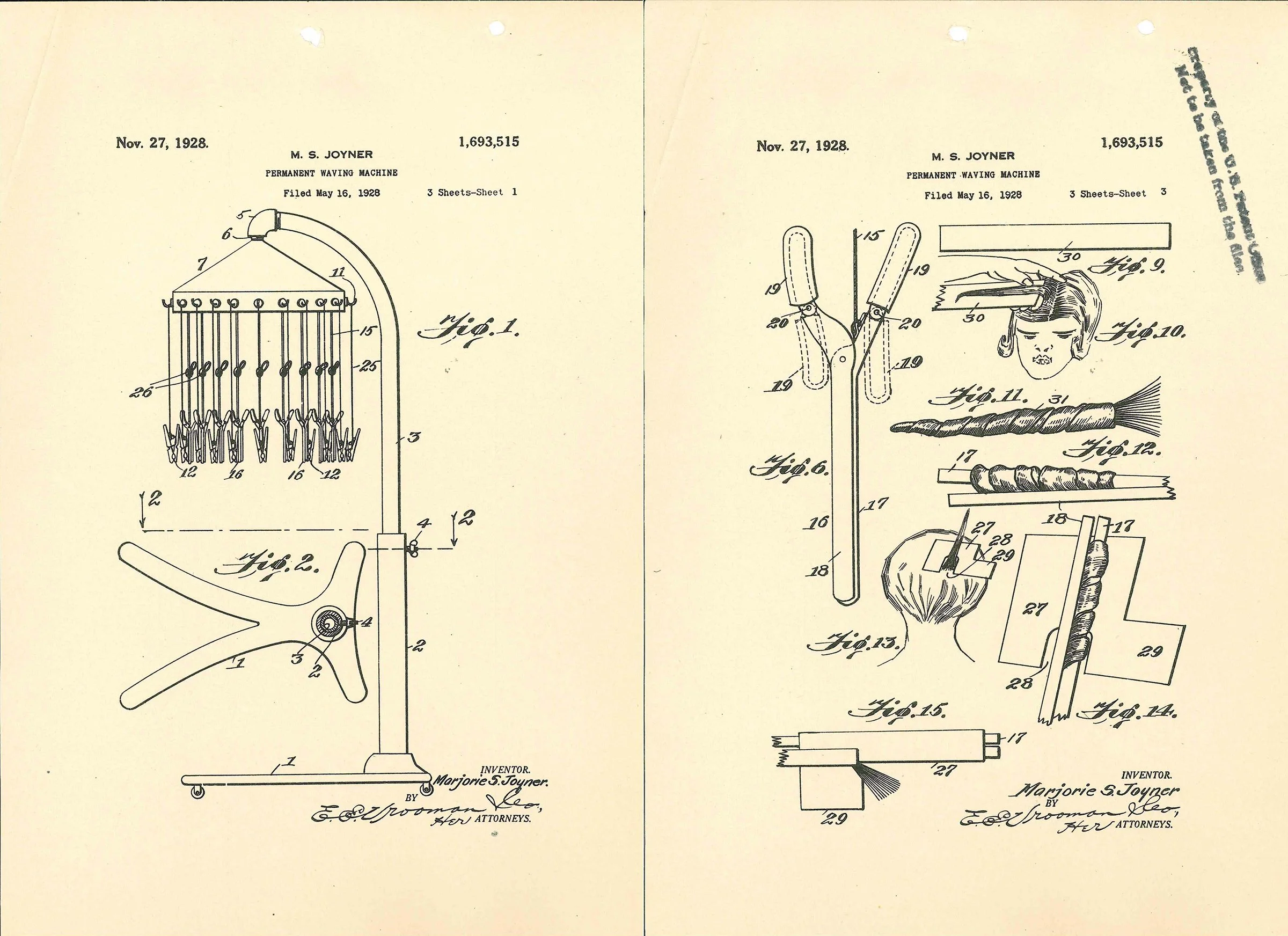 Submitted drawings for permanent wave machine, 1928, Sheets 1 and 3 of 3.